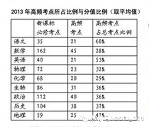 以下是2010年-2013年全国高考数学高频考点考试次数统计(以理科为例)