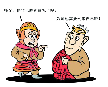 宁可误判一万绝不错杀一个。不但自律 性好,为人表率,而且对员工非常好,亲自为 大徒弟缝制皮服遮羞,好吃的东西也给二徒弟 吃。爱护下属,不打击不谩骂下属,真心对待下属,下属自然真心拥戴。员工感情情同父子。自然团队的凝聚力高。最终到达西天极乐 世界,求得真经,功德圆满。