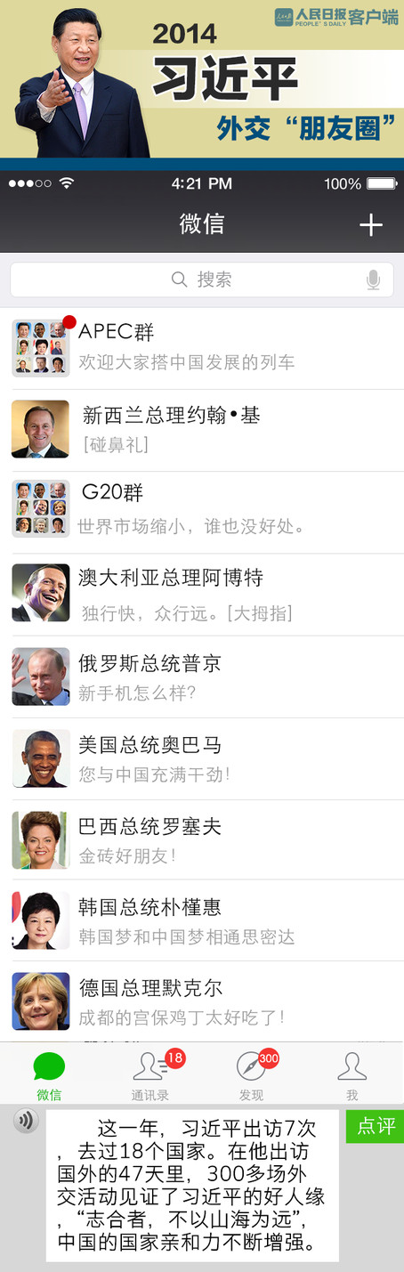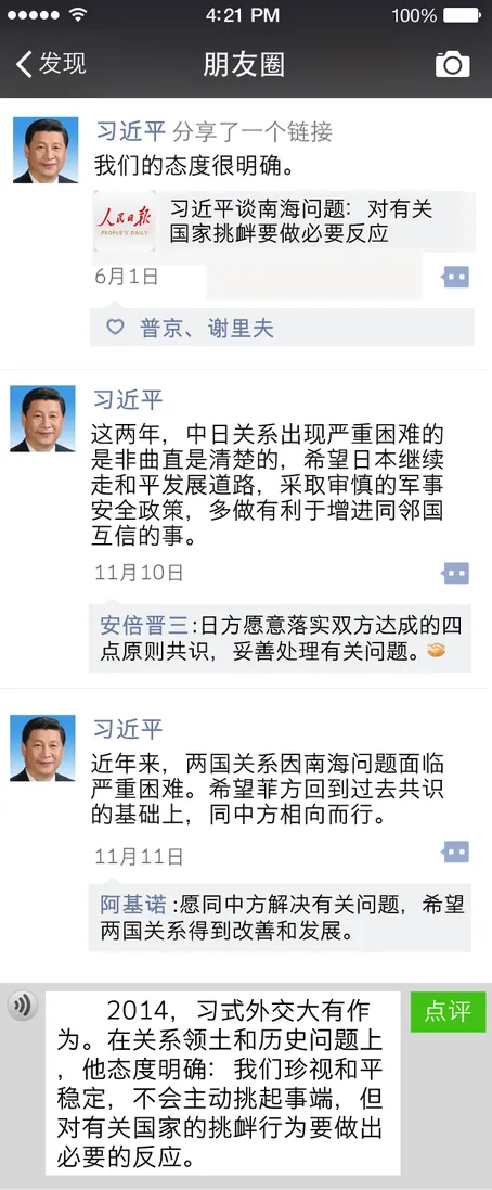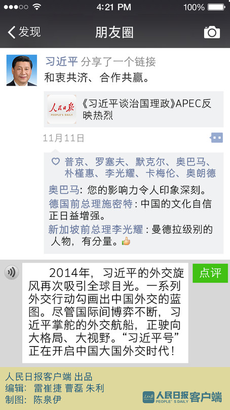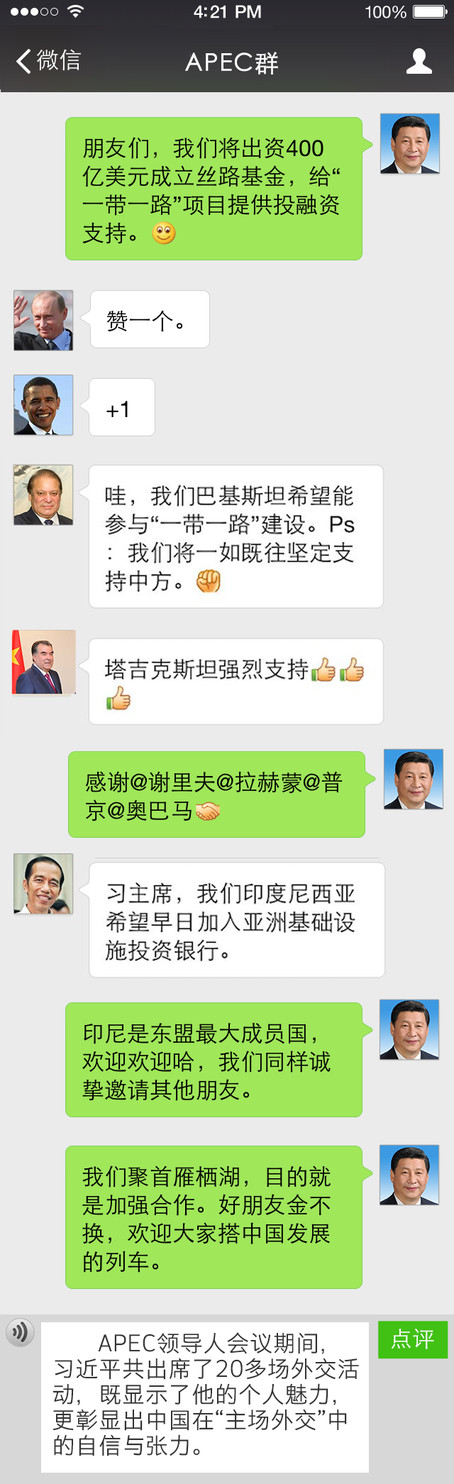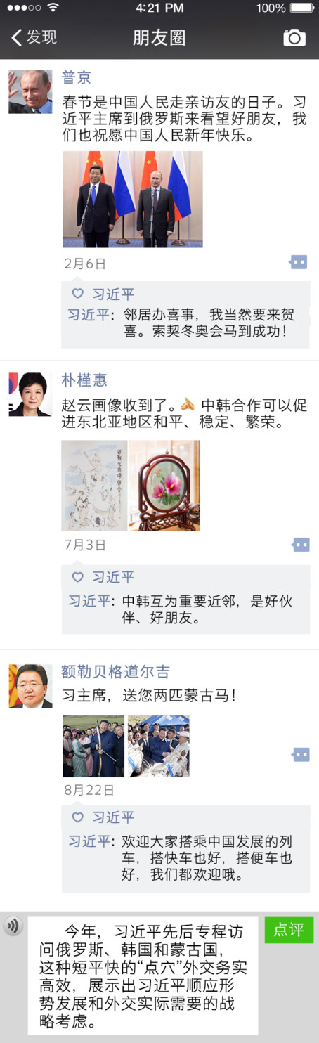 如果各国元首也玩微信,那么2014年习近平的朋友圈应该是这个样子滴……