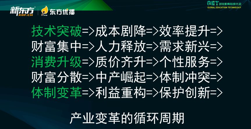 所以消费升级在于我能不能个性化地关注到每一个客户,这样使得财富分散,就会形成一个广泛的中产阶级,而不是单独的一个特产阶级。中产阶级出现就会有体制冲突,就会有新的需求。
