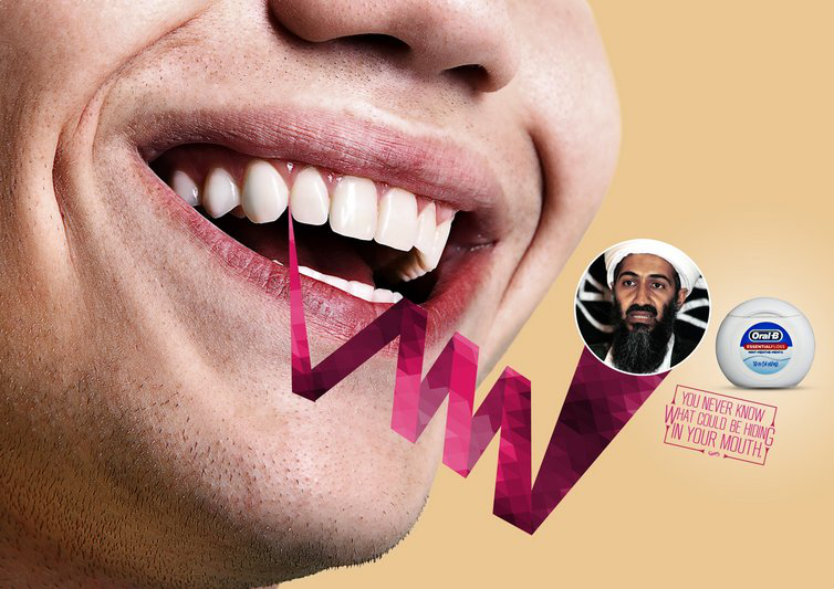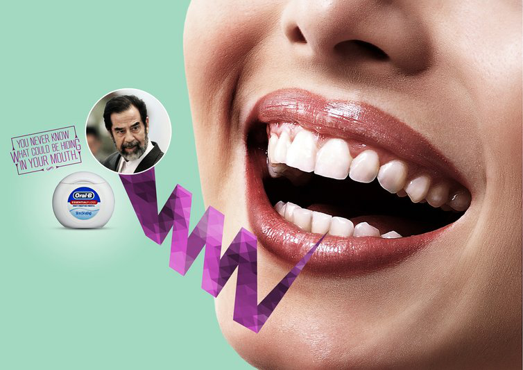 ▲Oral-B牙线广告:你永远不知道会有什么藏在你的牙缝中。看看广告中都有一些什么惊悚的大人物藏在你的牙缝里?