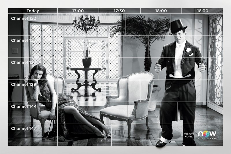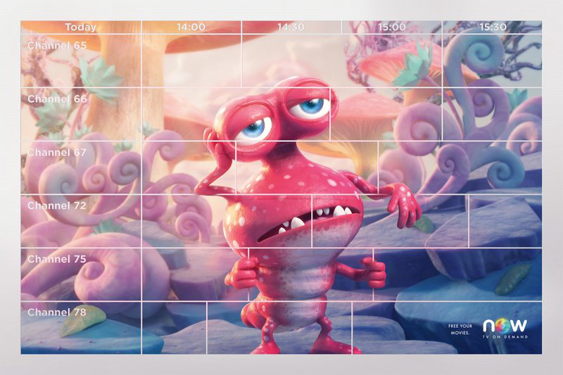 ▲Now TV定制电视广告:由频道和时间点的横竖抽围成的牢笼,把影视剧的主角们禁锢在里面,它们无精打采的抓着铁栅栏,渴求你还他们自由。其实这也是你的无奈心情吧,就跟我们这里每年如出一辙的节目档一样,总是还珠格格、西游记等等,即使再经典的影视剧也会变得枯燥乏味啊。你看,如此深知你心的Now TV定制电视,一定能为你提供精彩的影视剧。