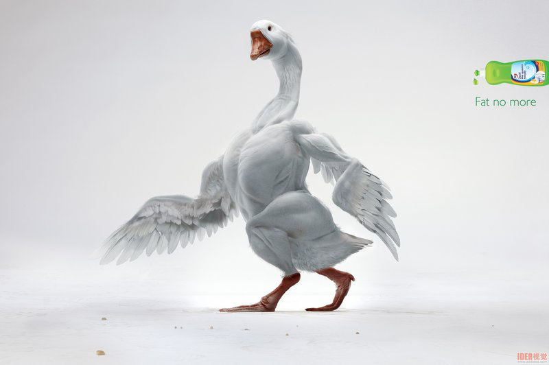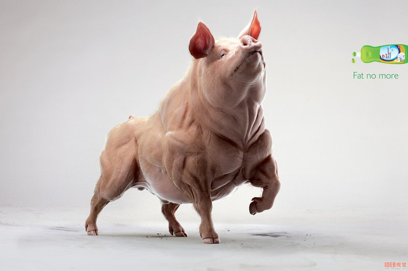 ▲Povna Chasha洗洁精广告:广告文案是Fat no more(不再油腻)。意指Povna Chasha洗洁精的去油腻的能力非常强,用在长满肥膘的动物身上,瘦的就只剩下腱子肉了。不过,如果不告诉你是洗洁精的广告,这个创意也可以应用在健身室或减肥产品上。