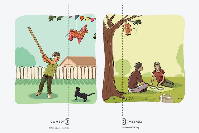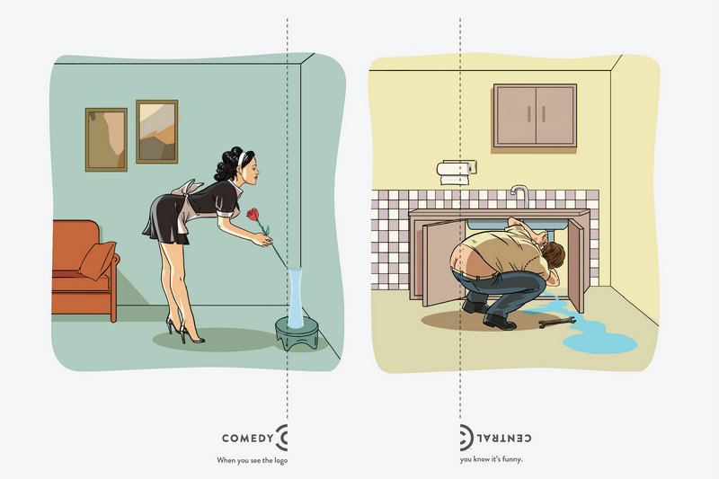 ▲美国戏剧中心广告:美国戏剧中心的这系列广告很是有点恶趣味。在没有看到Logo的情况下, 大家可能都不曾发觉广告画面中两个场景的联系,但是当大家安虚线将Logo合二为一时,戏剧性的亮点就出来了。你看到亮点了吗?