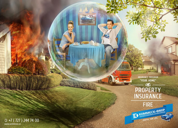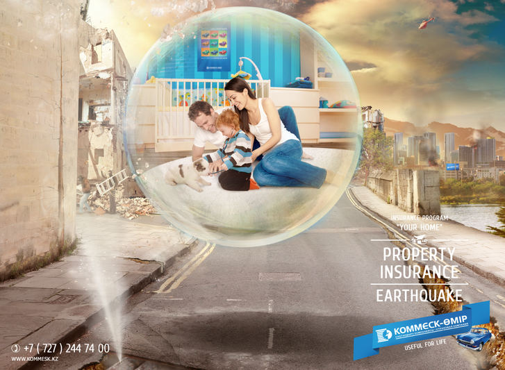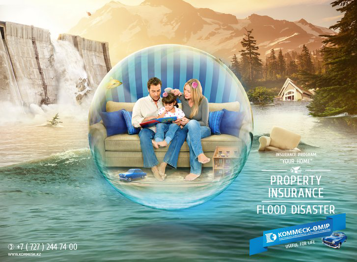 ▲财产保险广告:不管外界发生何事,我们都能给你一个安定温暖的家。气泡内的温馨与外界的动荡形成了鲜明对比,给人留下深刻印象。