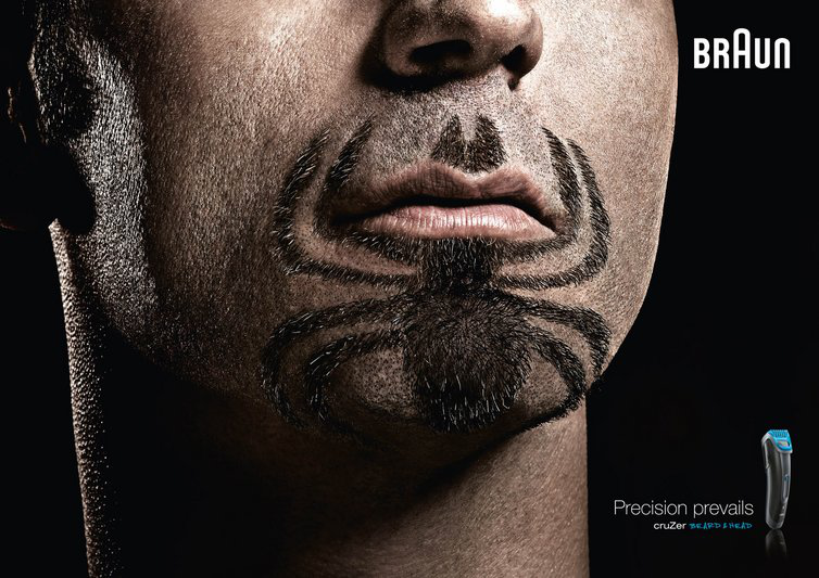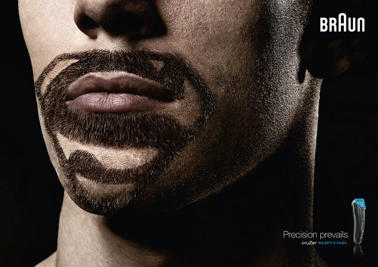 ▲博朗剃须刀广告:每个男人心中都有一个英雄梦。博朗剃须刀不仅锋利,操作也灵巧,立马帮你实现你的Super Hero梦。极具视觉表现力的一则广告。