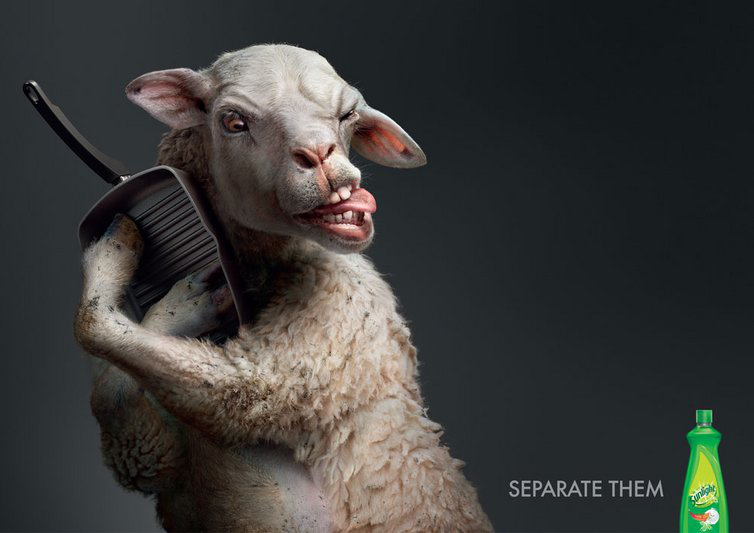 ▲阳光洗衣液广告:轻轻松松,分离它们。广告言简意赅,但画面设计执行很到位,很夺人眼球。