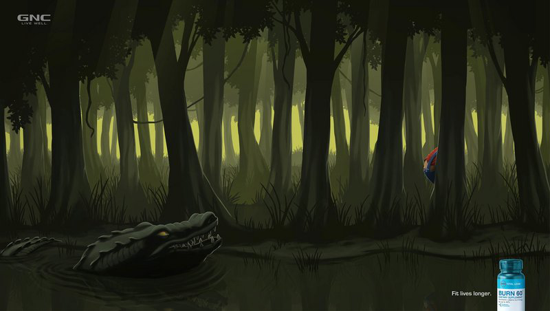 ▲GNC Burn 60减肥药广告:三月不减肥,四月徒伤悲,五月路人雷,六月男友没……关于减肥,总是有各种段子可谈,因此减肥药之类的广告重来都不缺创意灵感。此次,GNC Burn 60减肥药广告提出瘦子活的更久的理念。从这组广告看来,确实是如此,本来在鳄鱼、原始人、抓奸者面前有一线生机的,却被大大的肚腩给出卖了。这个理念虽然有点极端,但广告制作得极有喜感。
