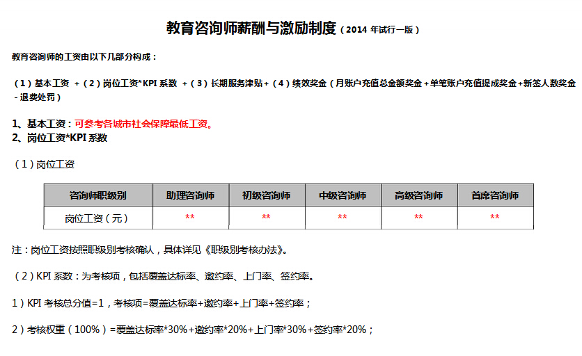 当前位置:营销>运营管理>学大教育咨询师薪酬与激励制度(2014版)
