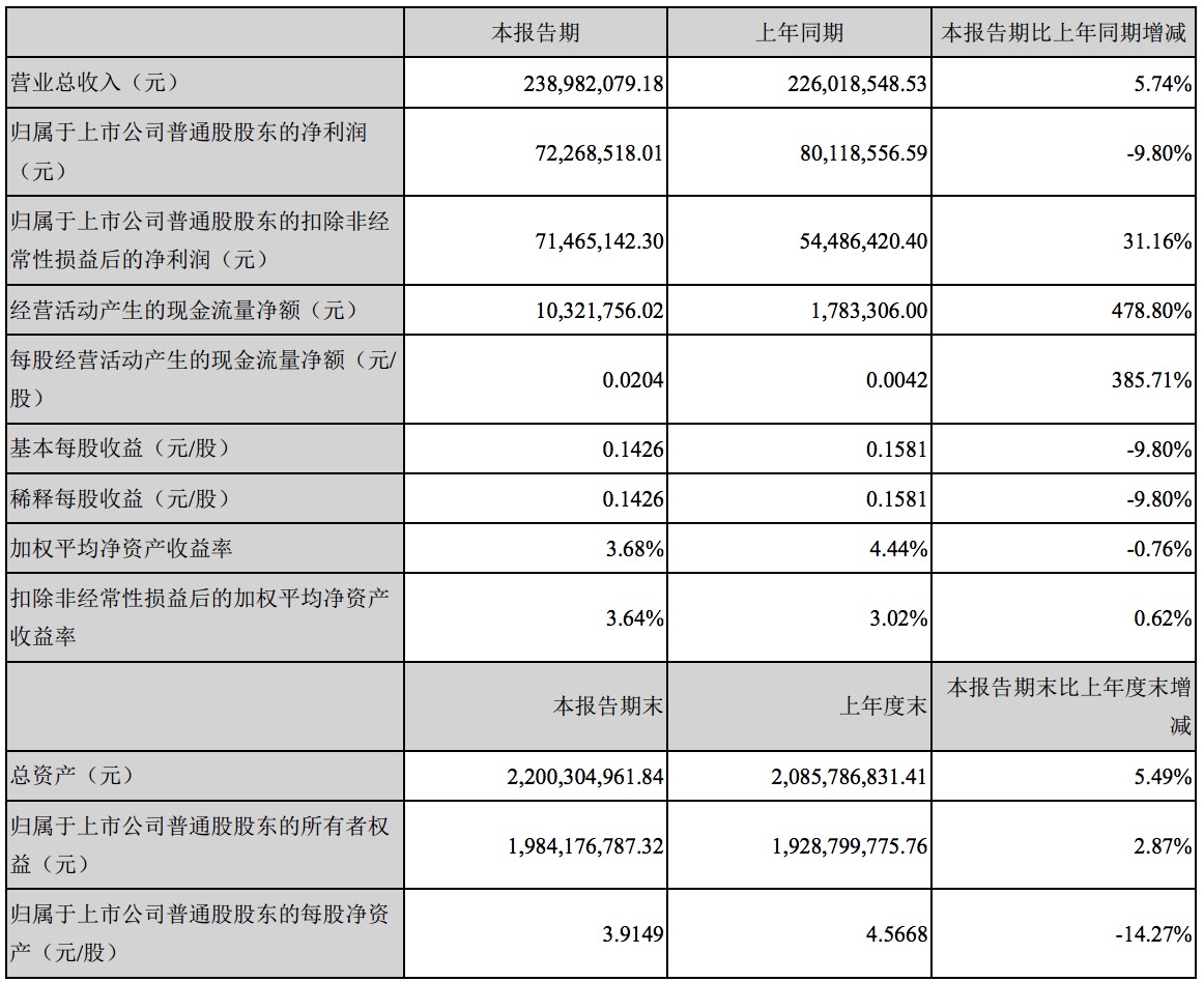 8月22日消息,今日,天舟文化股份有限公司(以下简称:“天舟文化”)发布 2016 年半年度报告,报告显示,营业总收入2.39亿元,同比增长5.74%;实现归属上市公司普通股股东净利润 7226 万元,同比下降 9.80%;实现归属于上市公司普通股股东的扣除非经常性损益后的净利润 7146万元,同比增长 31.16%。