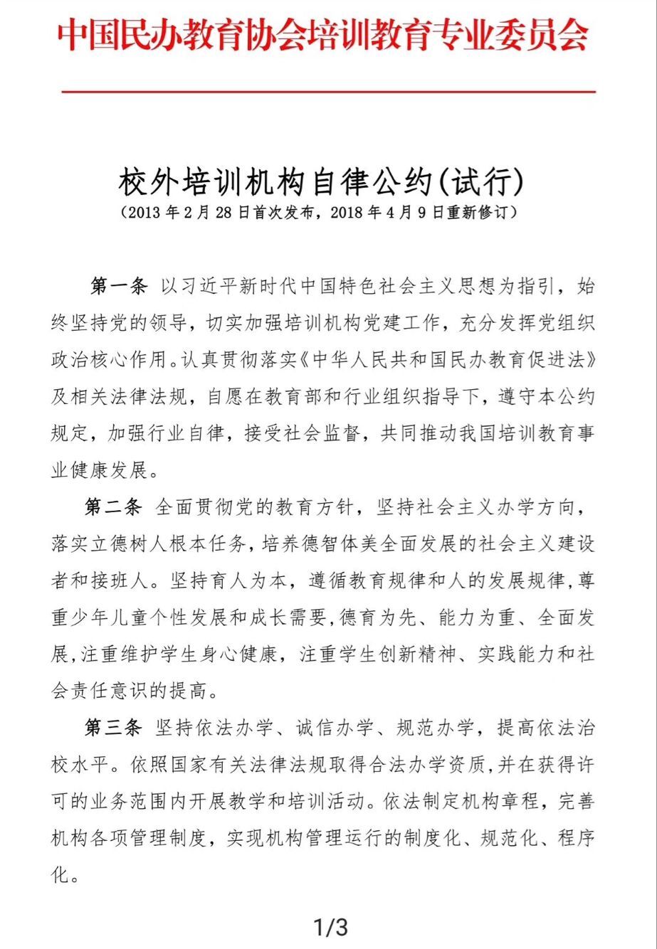 4月9日消息,第七届中国培训教育发展大会在郑州召开,在此次会议上发布了新修订的《校外培训机构自律公约》。