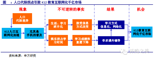 K12阶段人口互联网化已经开始,95后、00后将拉动K12教育互联网化大潮开启: