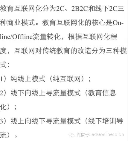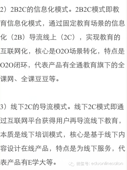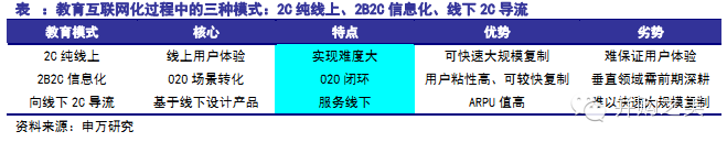 1)教育互联网化分为2C、2B2C和线下2C三种商业模式;