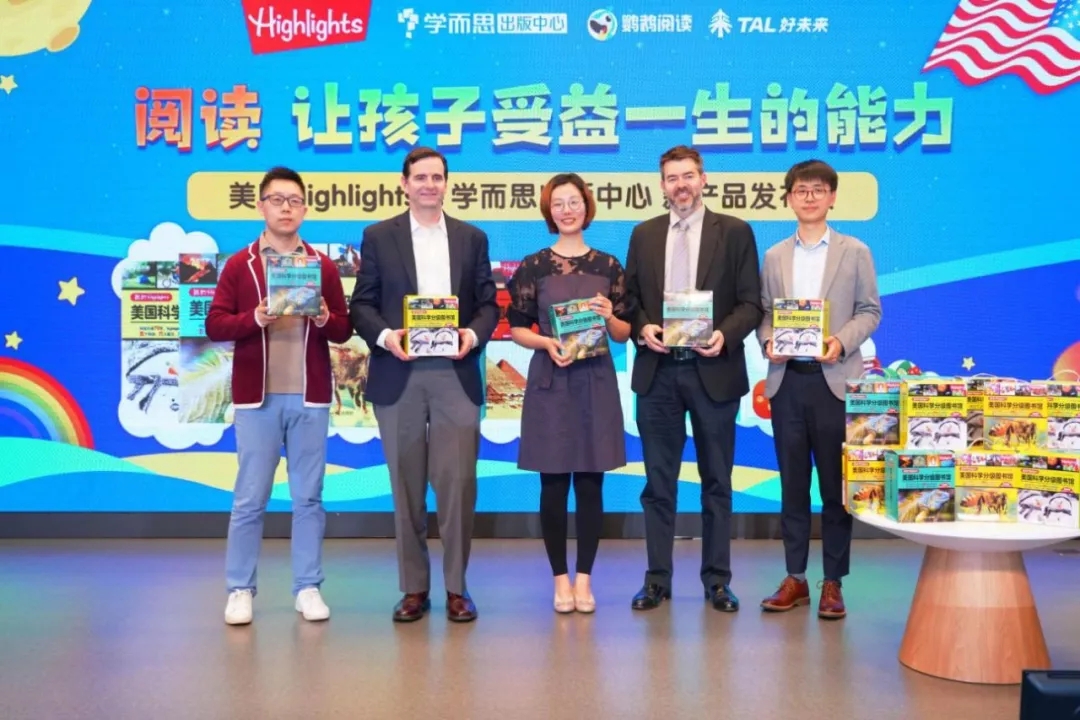 美国Highlights出版公司副总裁Andy Shafran以及中国区总经理Vivien Wu、学而思出版中心负责人田雪、美国Highlights出版公司亚太区主管Michael Davis共同出席活动,并介绍了合作初衷和愿景。发布会后,双方就“阅读——孩子受益一生的能力”为主题展开深入讨论。
