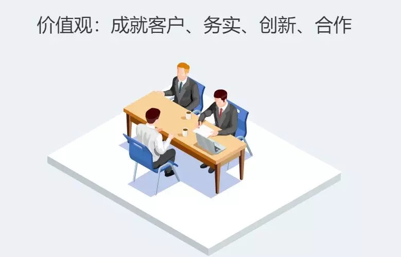 “成就客户”是让客户先赢;“务实”是做质量、做强、做内在;“创新”、“合作”都是站在长期的角度,短期全是投入、全是付出。