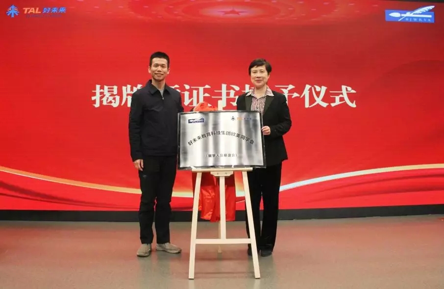 燕瑛和张邦鑫共同为好未来教育科技集团欧美同学会(留学人员联谊会)揭牌