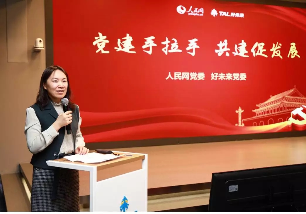 1月9日上午,由人民网党委和好未来党委共同举行的“党建手拉手 共建促发展”学习座谈活动在好未来集团北京总部举行。人民网党委委员、党委办公室、纪检监察室副主任张莹等人民网相关领导,好未来党委书记、集团副总裁于莉,好未来党委全体委员以及好未来全国各分校党组织负责人共同参加了本次活动。
