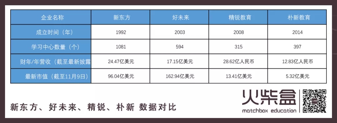 创业家&i黑马,也将精锐教育的数据和新东方、好未来、朴新教育做了对比: