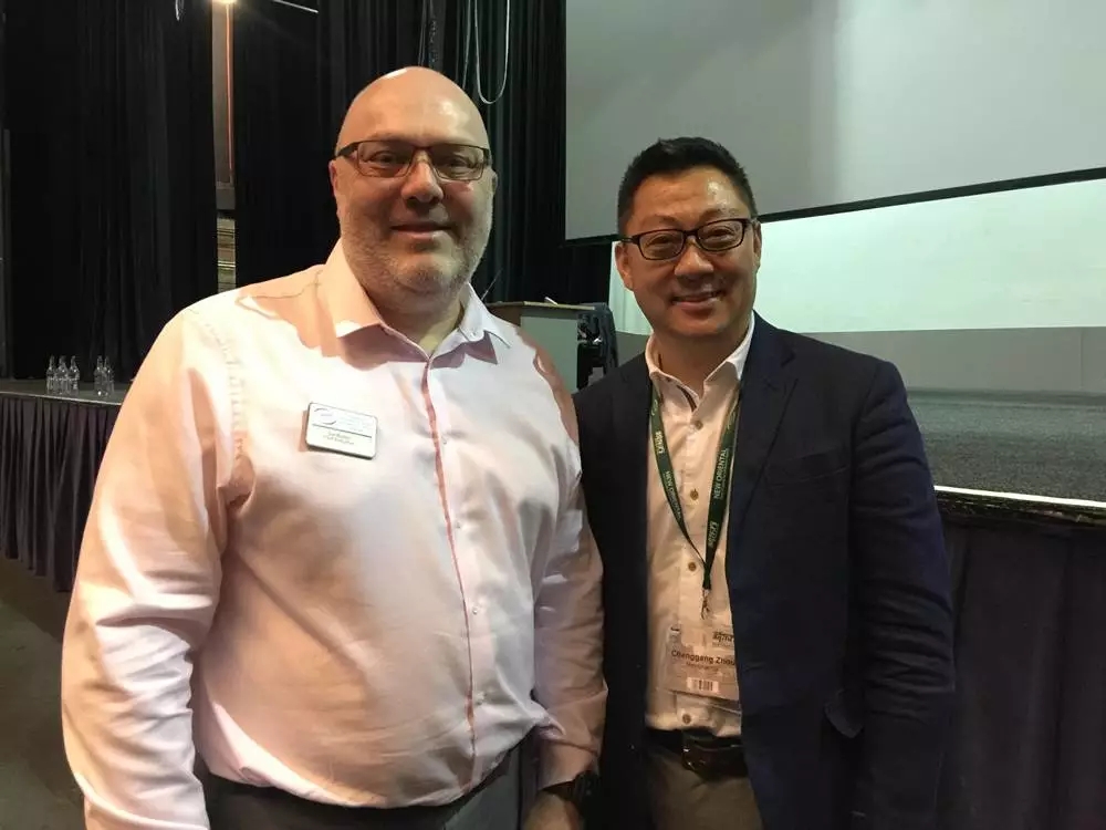 (IATEFL CEO Jon Burton与新东方CEO周成刚)