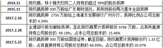 首先是质押股份。自2014年起,全通实际控制人反复质押股份的资本操作手段,无疑给其发展状况蒙上了一层晦涩不明的阴影。