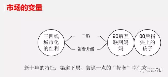 第二点是新的二胎以及消费升级,以及我们今天越来越多的九零后妈妈和零零后的孩子,这些都使得新的一些消费特征出现了。
