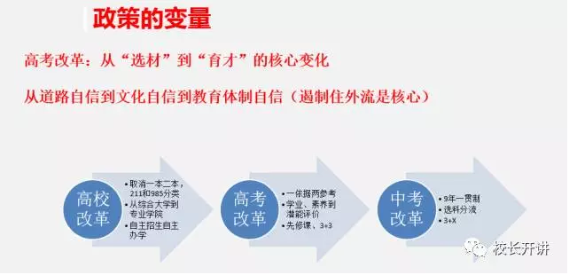 第一点高校改革,比如取消一本、二本,取消211、985,只做双一流,这样大学会从综合性大学变成专业学院和职业学院,自主招生比例会越来越高。