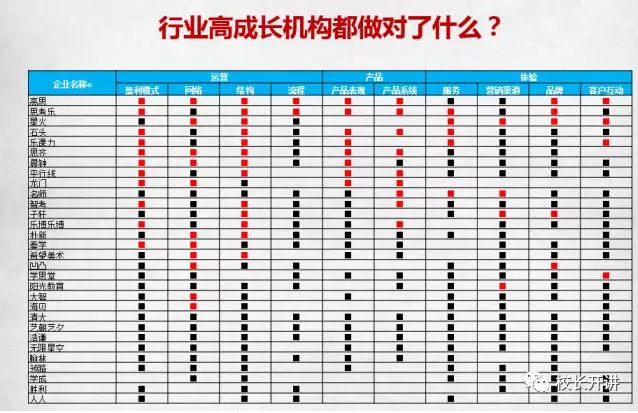 我们也做个对比,就是说我们把过去一年当中比去年高速增长一倍的线下机构,都拿出来进行综合的评价,我们会发现这些学校都有非常大的特点。