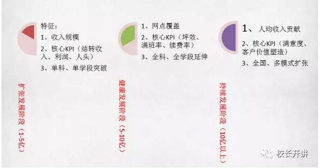 第一:在扩张发展阶段可以只关心收入、规模,你的核心KPI就是阶段收入、利润和人头,你看到的关注的全都是单科单学段的突破。
