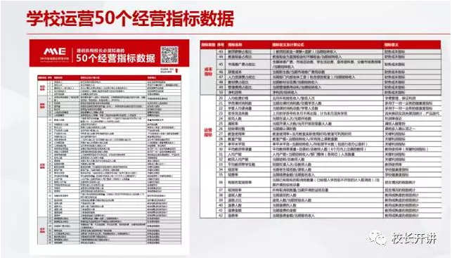 我刚才贴的这张图是学校运营的五十个经营指标数据,这个是大家汇的经营管理团队总结出来的,这些都代表着一个学校运营的效度和运营的精细化管理的程度。跟好多学校的校长聊天问他们,能给我说几个关键指标吗,可能掰着手指凑不出十个,但是今天优质的教育机构可以拿出五十个、八十个、九十个关键指标来对标优秀的运营体系。