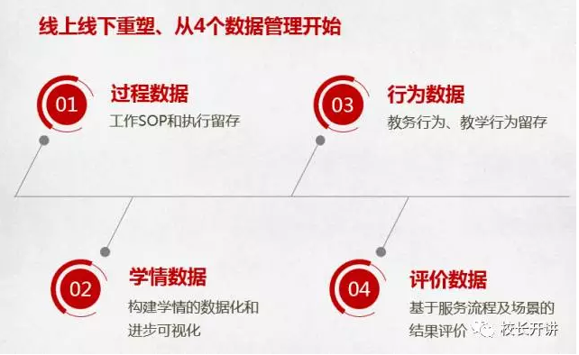 第二:管理数据化,一定要重视数据,一定要重视教务数据、教学数据、教学过程的行为数据、服务数据。
