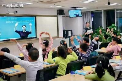 学而思培特色的教学模式“双师课堂”:一名在教室里的老师加上一名在线老师为学员们上课。供图|学而思