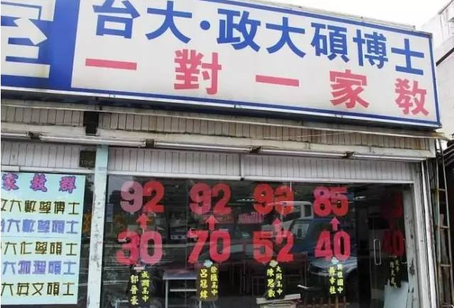 不少去过台湾的人都会对台湾的“补习一条街”有印象,各种补习班扎堆出现,气势壮观无比。例如台北火车站附近的南阳街就有一条所谓的“补习街”,整条街都挂着广告牌。