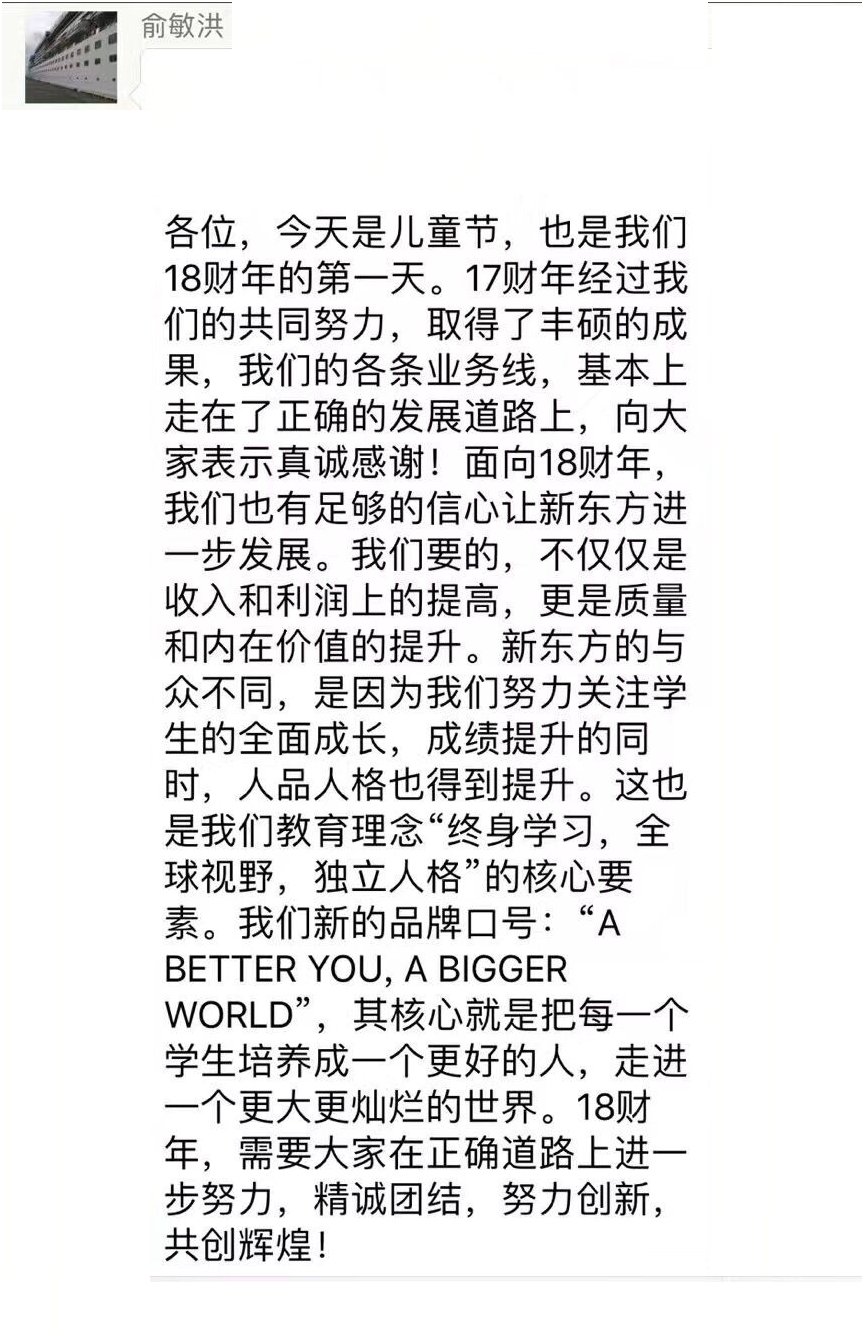 新东方进入了2018财年,还在游轮上的俞敏洪老师对团队寄予新的希望,下面是俞老师给小伙伴们的寄语。