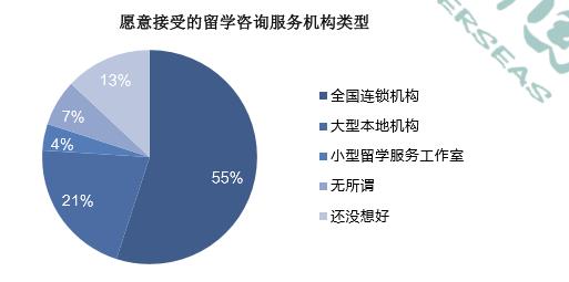 根据新东方的调研,全国连锁机构更加受到消费者信赖。而近年来留学市场中大量出现的小型留学工作室,并不是市场的主流选择。