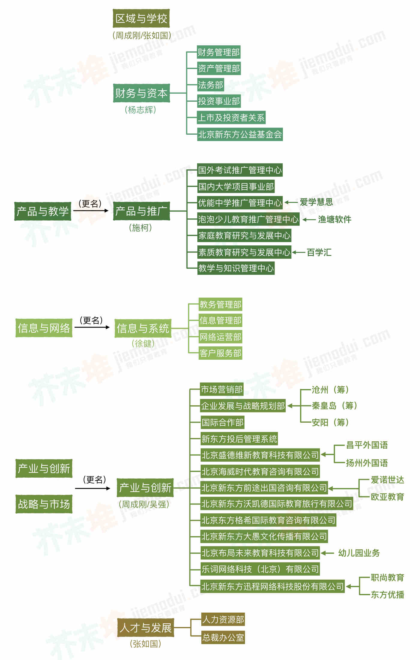 在调整之后,新东方集团组织架构如下:
