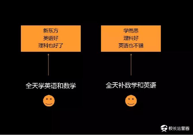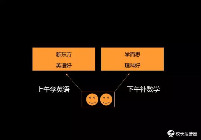 现在北京新东方学而思都有一个问题,就是学生学一科的现象很严重,很多学生上午跑新东方,下午跑学而思,原因就是在家长心里:新东方英语好,学而思理科好。
