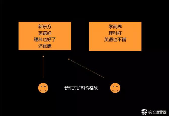 新东方开启扩科价格战,就必然导致在新东方学英语、在学而思学理科的学生把所有科目转到新东方。