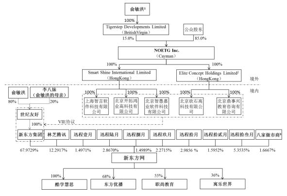 新东方集团持有公司67.9729%股份,是公司的控股股东。股权结构图如下: